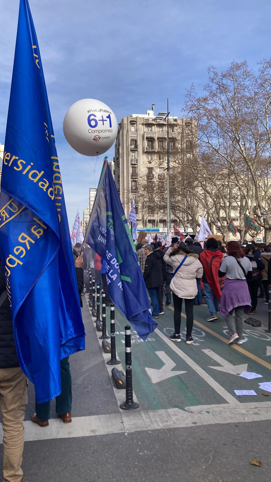 El martes durante la mañana, se concentró en el local de ADUR y luego se marchó junto a otros gremios desde la UdelaR hasta Plaza Libertad, en una movilización que congregó a cientos de personas bajo la consigna: “El pueblo primero, más salario y trabajo, mejor Uruguay”