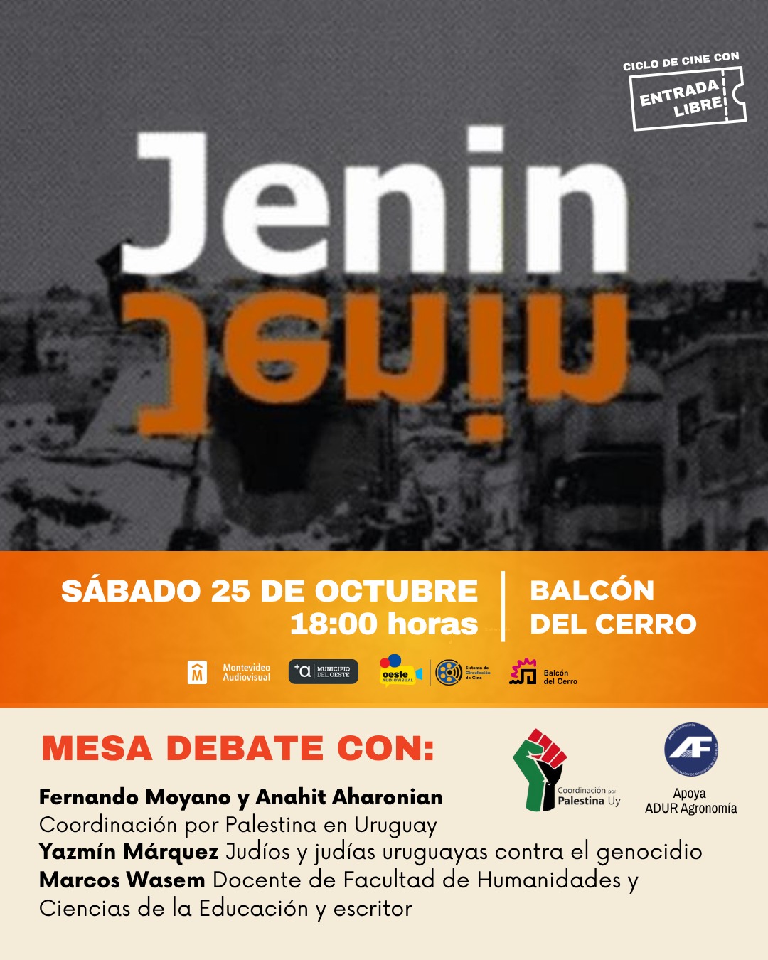 ADUR Agronomía apoya la proyección de la película “Jenin Jenin”, una instancia de reflexión colectiva sobre la situación en Palestina.